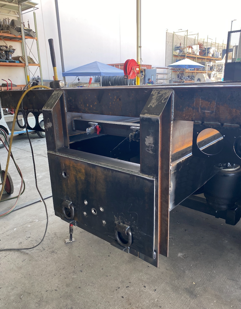 This is an example of the heavy-duty welding and fabrication work we do for contractors and fleets. If you need a custom build or repair, we can help.